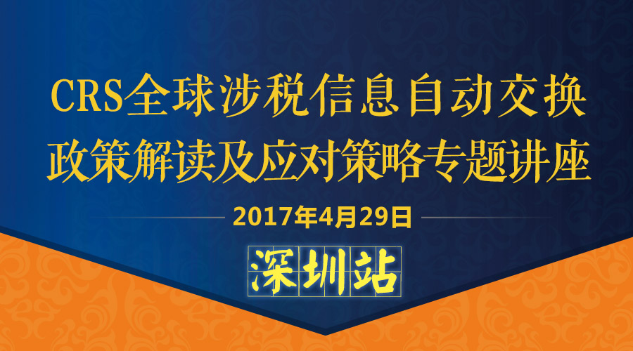 现在,也许你已经查阅、了解了很多CRS相关的法规、知识,但仍然不知如何下手来应对CRS。福利来了!为了让广大客户更深刻地了解CRS,更好地应对CRS可能带给大家的影响,今年,我司特别在深圳、上海、北京安排了多场CRS专题讲座。4月29日,我司将在深圳举办2017年第四场CRS讲座,并邀请了多位老师为大家全方位解读CRS,详细对CRS的热点政策、实施步骤及各类风险作深度的剖析解读,并提出合理的应对方案,有兴趣的朋友赶快报名参加我们的讲座活动吧!